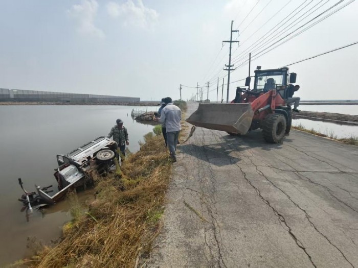 上午10時左右,海豐鎮(zhèn)村民駕駛?cè)嗆囃窘?jīng)建筑工程公司東側(cè)路段時,因避讓車輛造成三輪車失控,連人帶車沖入路北的水中。三輪車落水后迅速傾斜下沉,情況危急,村民大聲呼救。